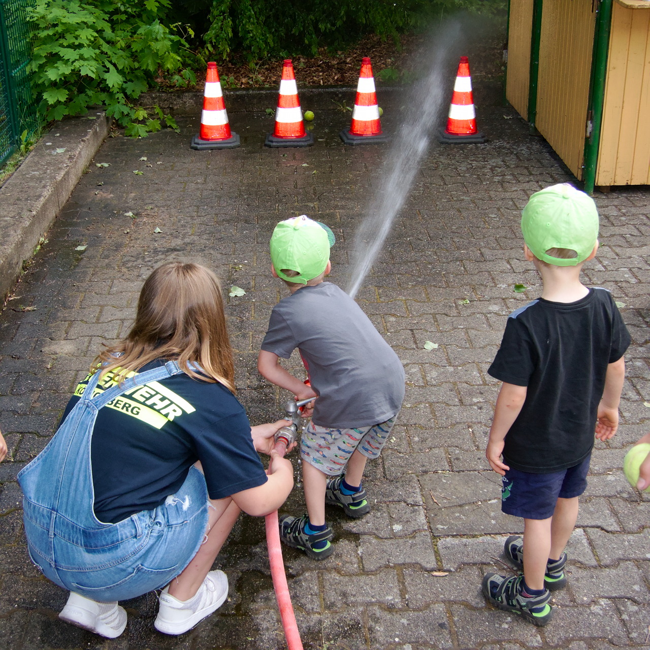 Am späten Nachmittag gab es außerdem eine Löschvorführung durch die Mitglieder der Jugendfeuerwehr, die, mit Blaulicht und Martinshorn angerückt, ein brennendes Holzhaus in kürzester Zeit löschen konnten. Ein informativer und unterhaltsamer Nachmittag, den die Feuerwehr Königsberg am Sonntag den Besuchern aller Altersschichten bot.