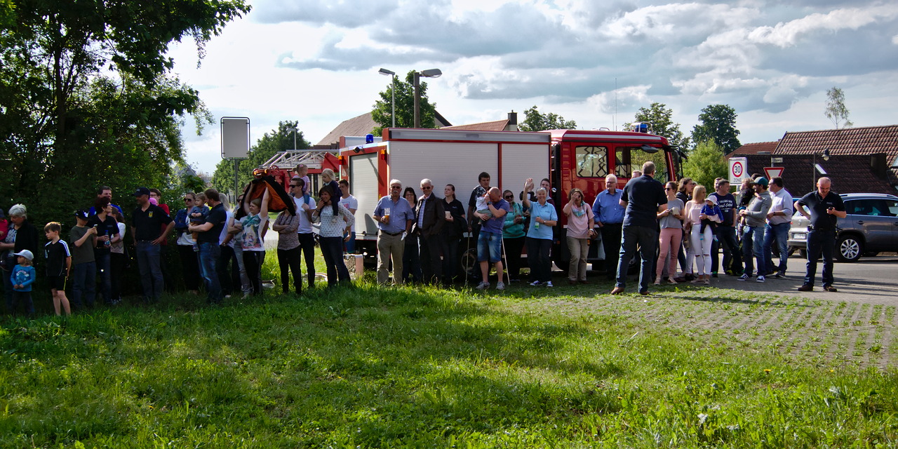 Vor dem Feuerwehrgerätehaus versammelten sich bei schönem Frühlingswetter viele Besucher und genossen nicht nur die wärmenden Sonnenstrahlen sondern auch Kaffee und Kuchen, Bier, Steak und Bratwurst. Die Kids konnten sich an verschiedenen Spielgeräten amüsieren oder auf einer Hüpfburg kleine Sprünge wagen. Zudem konnten die aufgestellten Fahrzeuge und Gerätschaften der Feuerwehr inspiziert werden.